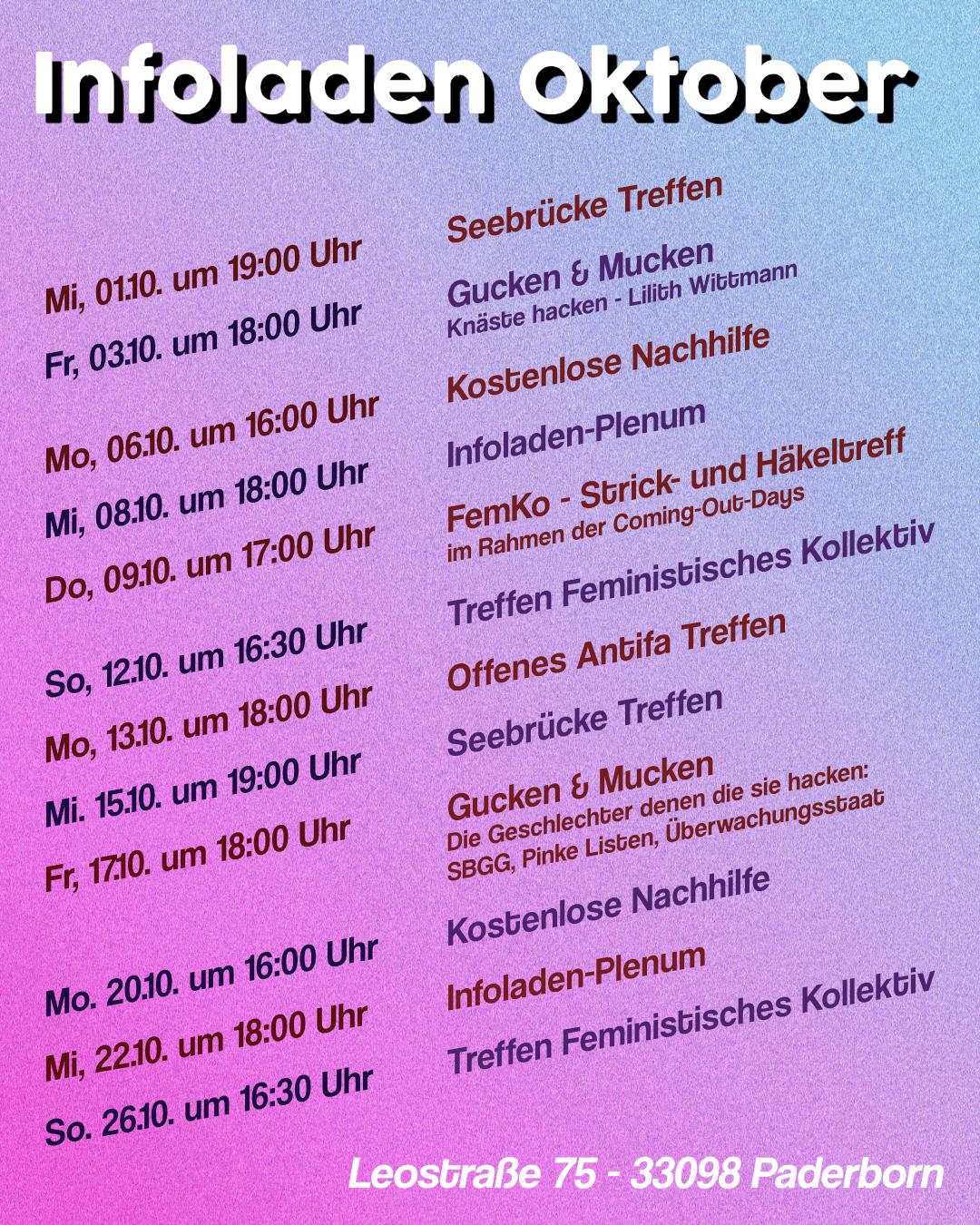 Am Montag, 21.04. ab 13 Uhr steht der Frühjahrsputz im Haus, äh, Infoladen. Wir machen uns und den Laden fit für den Sommer. Kommt gerne vorbei, für Kaltgetränke (gegen Spende) ist gesorgt.
